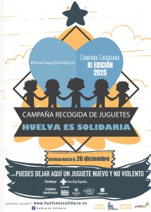 La iniciativa ciudadana Huelva es Solidaria ha puesto en marcha su undécima edición con un llamamiento a la solidaridad de toda la provincia para donar juguetes nuevos y no bélicos destinados a la infancia más vulnerable. La campaña permanecerá activa hasta el próximo 26 de diciembre, con decenas de puntos colaboradores repartidos por distintos municipios onubenses