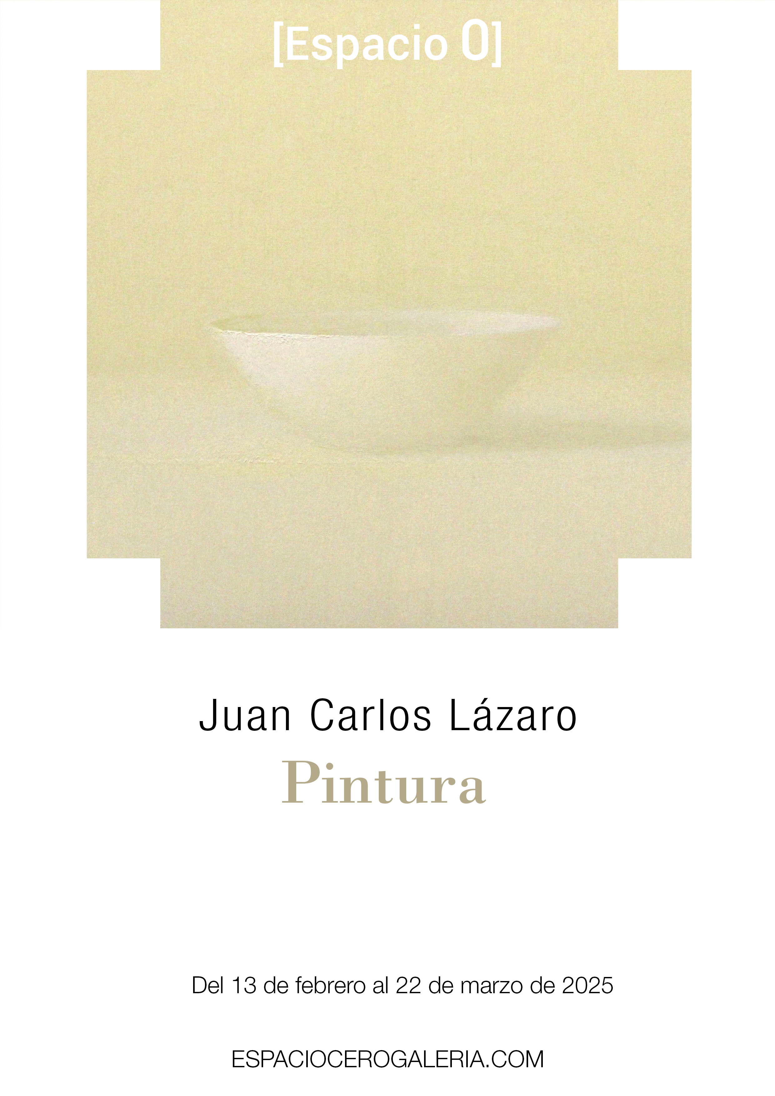 La exposición «Pintura» de Juan Carlos Lázaro podrá visitarse en la Galería Espacio 0, ubicada en el número 52 de la calle Miguel Redondo, en Huelva, desde el 13 de febrero hasta el 22 de marzo de 2025.